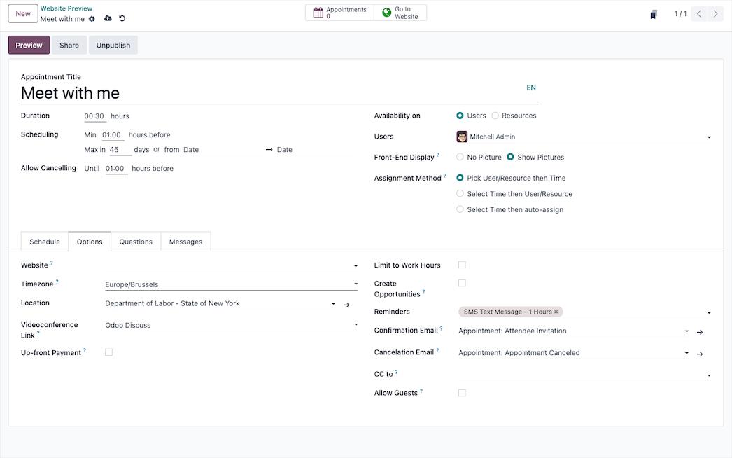 Ottimizza la tua gestione degli appuntamenti con Odoo. La sua interfaccia intuitiva e le funzionalità avanzate ti permettono di organizzare al meglio il tuo tempo e semplificare gli incontri con i tuoi clienti